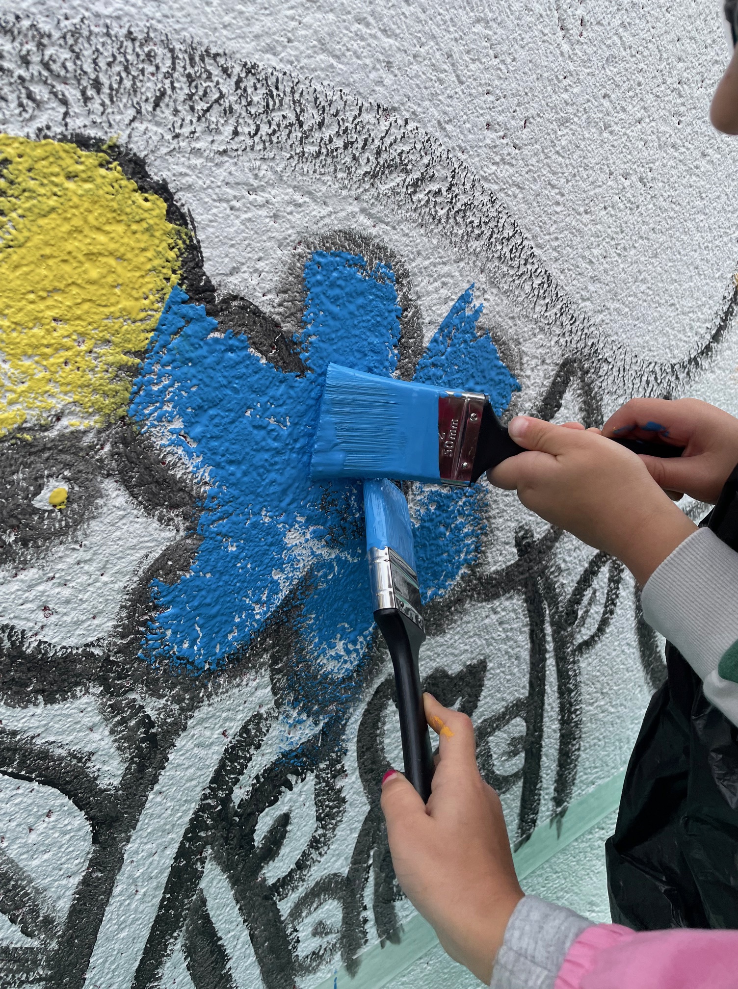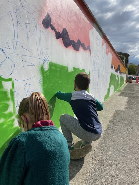 Les élèves ont participé a la mise en couleur de la fresques .
