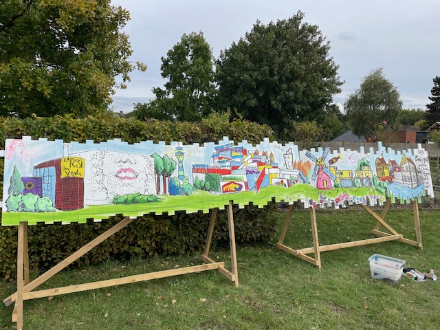 Realisation d’une fresque murale à Carvin , avec les enfants des ecoles maternelle et primaire .