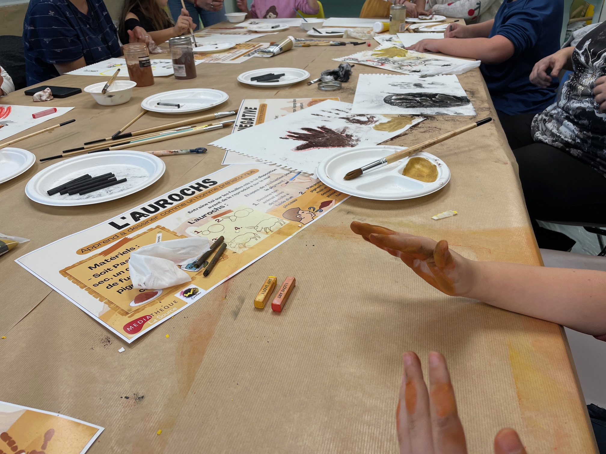 L’atelier immersif proposé une « mini grotte » afin de permettre aux enfants comme aux parents de réalisé leur propre œuvre sur un mur de caverne, réalisé pour l’occasion .
