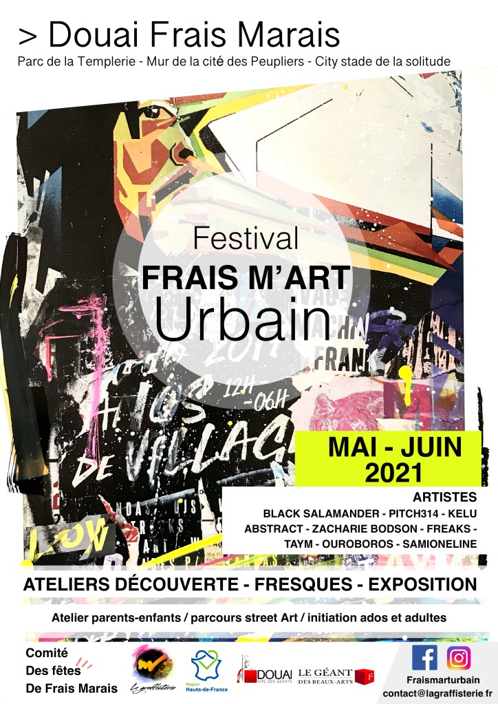 Le Festival d’Art : Frais M’Art Urbain , s’est déroulé à Douai ( Nord 59 ) entre mai et juin 2021à Douai Frais Marais et vous a proposé de venir découvrir les techniques des artistes urbain et contemporains .