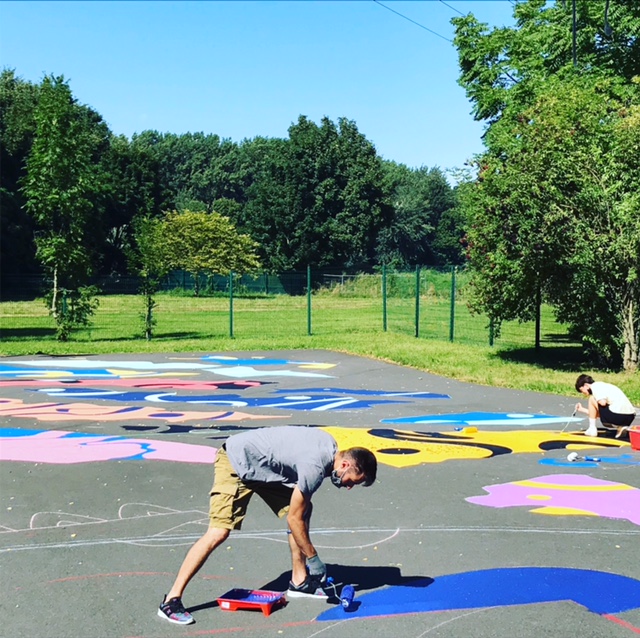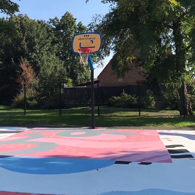La création d’une œuvre sur la surface d’un terrain de basket